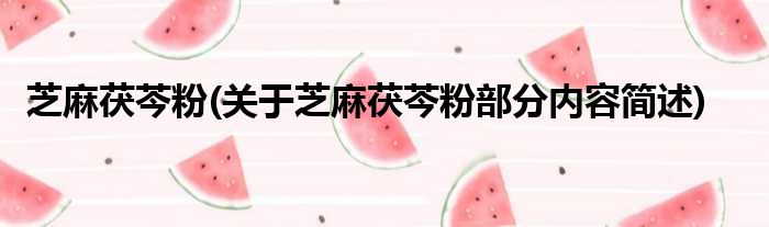 芝麻茯芩粉(关于芝麻茯芩粉部分内容简述)