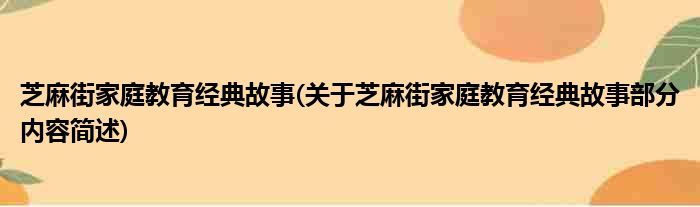 芝麻街家庭教育经典故事(关于芝麻街家庭教育经典故事部分内容简述)