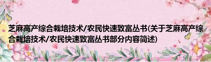 导读 大家好,今天小方来说说一篇关于芝麻高产综合栽培技术 农民快速致富丛书,关于芝麻高产综合栽培技术 农民快速致富丛书部分内容简述的文章,