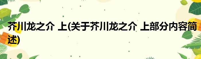 芥川龙之介 上(关于芥川龙之介 上部分内容简述)