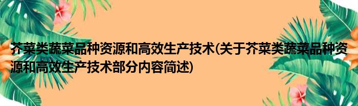 芥菜类蔬菜品种资源和高效生产技术(关于芥菜类蔬菜品种资源和高效生产技术部分内容简述)