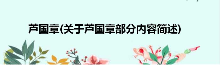 大家好,今天小方来说说一篇关于芦国章,关于芦国章部分内容简述的文章,那么现在就为大家来简单介绍下,希望对各位小伙伴们有所帮助。
