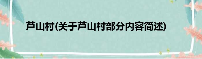 导读 大家好,今天小方来说说一篇关于芦山村,关于芦山村部分内容简述的文章,那么现在就为大家来简单介绍下,希望对各位小伙伴们有所帮助。