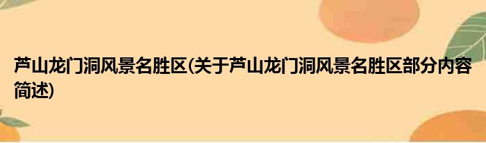 芦山龙门洞风景名胜区(关于芦山龙门洞风景名胜区部分内容简述)