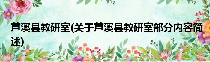 芦溪县教研室(关于芦溪县教研室部分内容简述)