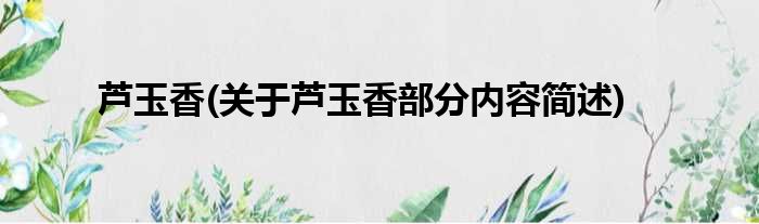 大家好,今天小方来说说一篇关于芦玉香,关于芦玉香部分内容简述的文章,那么现在就为大家来简单介绍下,希望对各位小伙伴们有所帮助。
