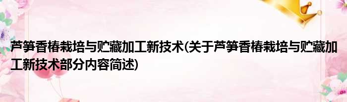 芦笋香椿栽培与贮藏加工新技术(关于芦笋香椿栽培与贮藏加工新技术部分内容简述)