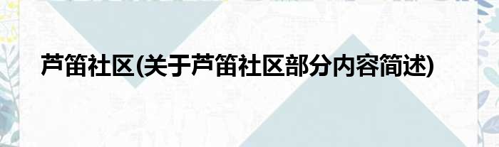 大家好,今天小方来说说一篇关于芦笛社区,关于芦笛社区部分内容简述的文章,那么现在就为大家来简单介绍下,希望对各位小伙伴们有所帮助。
