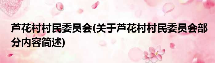 芦花村村民委员会(关于芦花村村民委员会部分内容简述)