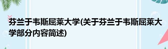 芬兰于韦斯屈莱大学(关于芬兰于韦斯屈莱大学部分内容简述)