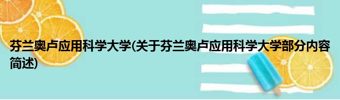 芬兰奥卢应用科学大学(关于芬兰奥卢应用科学大学部分内容简述)