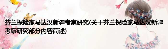 芬兰探险家马达汉新疆考察研究(关于芬兰探险家马达汉新疆考察研究部分内容简述)