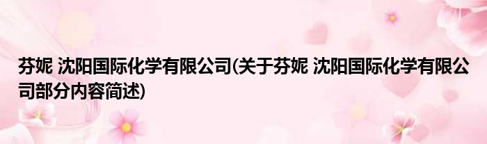 芬妮 沈阳国际化学有限公司(关于芬妮 沈阳国际化学有限公司部分内容简述)