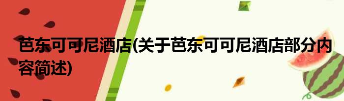 芭东可可尼酒店(关于芭东可可尼酒店部分内容简述)