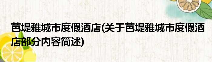 芭堤雅城市度假酒店(关于芭堤雅城市度假酒店部分内容简述)