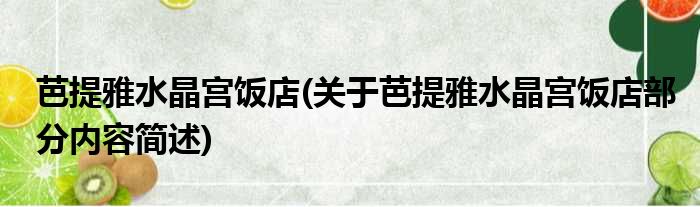 导读 大家好,今天小方来说说一篇关于芭提雅水晶宫饭店,关于芭提雅水晶宫饭店部分内容简述的文章,那么现在就为大家来简单介绍下,希望对各位小