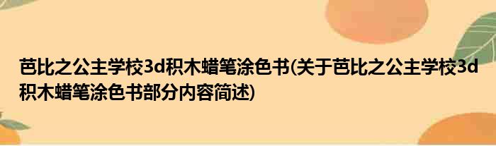 芭比之公主学校3d积木蜡笔涂色书(关于芭比之公主学校3d积木蜡笔涂色书部分内容简述)