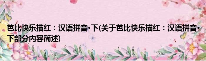 大家好,今天小方来说说一篇关于芭比快乐描红:汉语拼音·下,关于芭比快乐描红:汉语拼音·下部分内容简述的文章,那么现在就为大家来简单介绍下,希望对各位小伙伴们有所帮助。