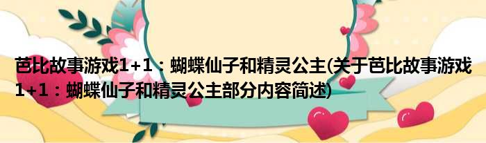 导读 大家好,今天小方来说说一篇关于芭比故事游戏1+1:蝴蝶仙子和精灵公主,关于芭比故事游戏1+1:蝴蝶仙子和精灵公主部分内容简述的文章,那么