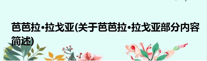 导读 大家好,今天小方来说说一篇关于芭芭拉·拉戈亚,关于芭芭拉·拉戈亚部分内容简述的文章,那么现在就为大家来简单介绍下,希望对各位小伙伴