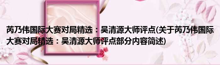 芮乃伟国际大赛对局精选:吴清源大师评点(关于芮乃伟国际大赛对局精选:吴清源大师评点部分内容简述)
