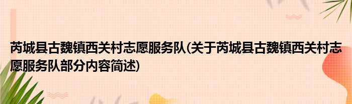 芮城县古魏镇西关村志愿服务队(关于芮城县古魏镇西关村志愿服务队部分内容简述)