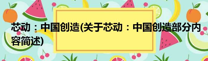 芯动:中国创造(关于芯动:中国创造部分内容简述)