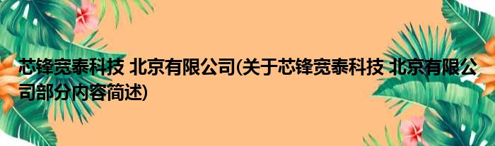 芯锋宽泰科技 北京有限公司(关于芯锋宽泰科技 北京有限公司部分内容简述)