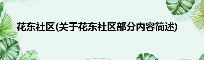 花东社区(关于花东社区部分内容简述)