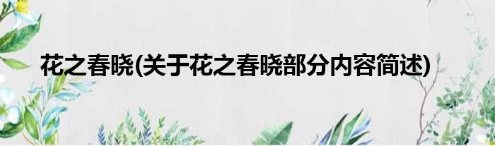 导读 大家好,今天小方来说说一篇关于花之春晓,关于花之春晓部分内容简述的文章,那么现在就为大家来简单介绍下,希望对各位小伙伴们有所帮助。