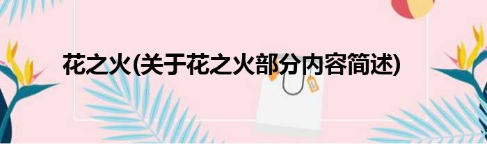 导读 大家好,今天小方来说说一篇关于花之火,关于花之火部分内容简述的文章,那么现在就为大家来简单介绍下,希望对各位小伙伴们有所帮助。