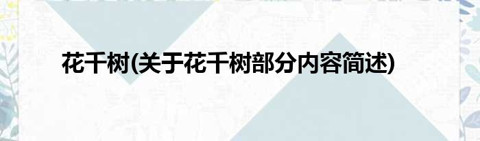 导读 大家好,今天小方来说说一篇关于花千树,关于花千树部分内容简述的文章,那么现在就为大家来简单介绍下,希望对各位小伙伴们有所帮助。