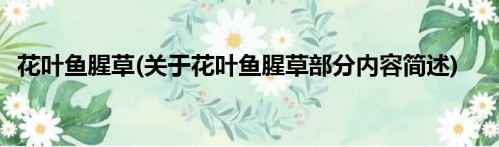 花叶鱼腥草(关于花叶鱼腥草部分内容简述)