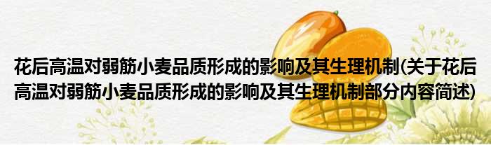 花后高温对弱筋小麦品质形成的影响及其生理机制(关于花后高温对弱筋小麦品质形成的影响及其生理机制部分内容简述)
