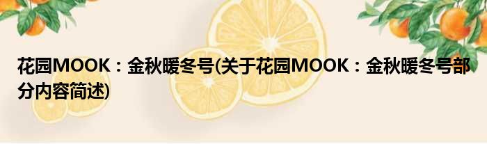 花园MOOK:金秋暖冬号(关于花园MOOK:金秋暖冬号部分内容简述)