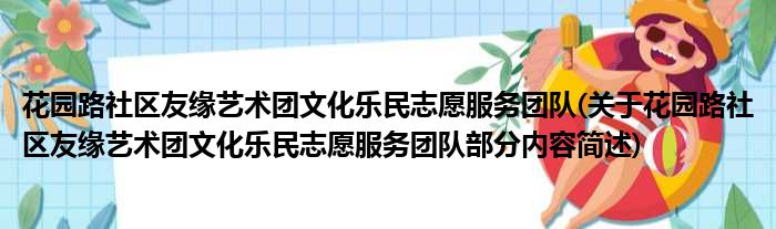 花园路社区友缘艺术团文化乐民志愿服务团队(关于花园路社区友缘艺术团文化乐民志愿服务团队部分内容简述)