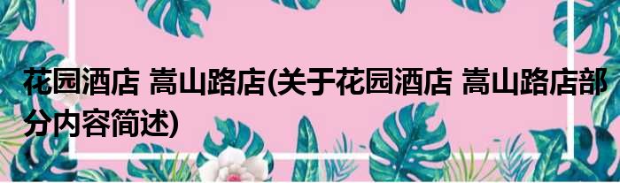 花园酒店 嵩山路店(关于花园酒店 嵩山路店部分内容简述)