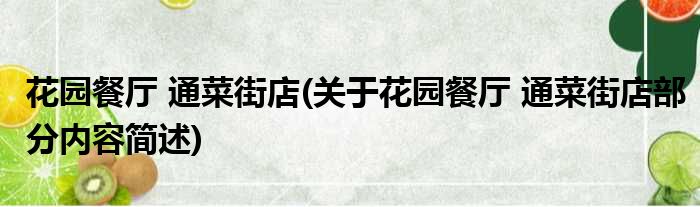 花园餐厅 通菜街店(关于花园餐厅 通菜街店部分内容简述)