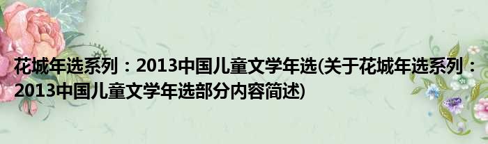 花城年选系列:2013中国儿童文学年选(关于花城年选系列:2013中国儿童文学年选部分内容简述)