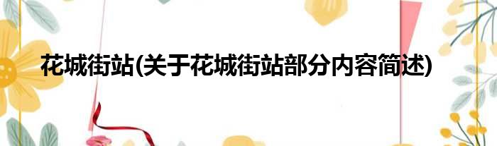 大家好,今天小方来说说一篇关于花城街站,关于花城街站部分内容简述的文章,那么现在就为大家来简单介绍下,希望对各位小伙伴们有所帮助。
