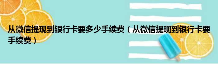 从微信提现到银行卡要多少手续费(从微信提现到银行卡要手续费)