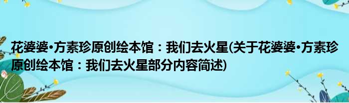 大家好,今天小方来说说一篇关于花婆婆·方素珍原创绘本馆:我们去火星,关于花婆婆·方素珍原创绘本馆:我们去火星部分内容简述的文章,那么现在就为大家来简单介绍下,希望对各位小伙伴们有所帮助。