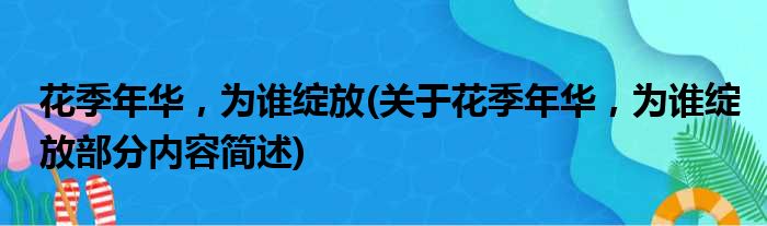 花季年华,为谁绽放(关于花季年华,为谁绽放部分内容简述)