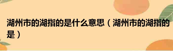湖州市的湖指的是什么意思(湖州市的湖指的是)