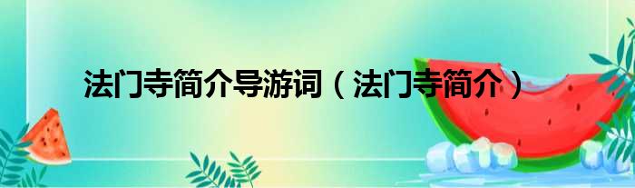 大家好,小活来为大家解答以上的问题。法门寺简介导游词,法门寺简介这个很多人还不知道,现在让我们一起来看看吧!