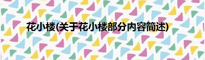 导读 大家好,今天小方来说说一篇关于花小楼,关于花小楼部分内容简述的文章,那么现在就为大家来简单介绍下,希望对各位小伙伴们有所帮助。