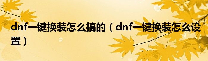 dnf一键换装怎么搞的(dnf一键换装怎么设置)