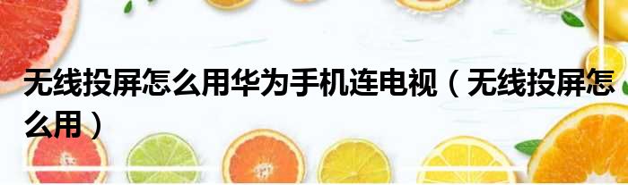 无线投屏怎么用华为手机连电视(无线投屏怎么用)