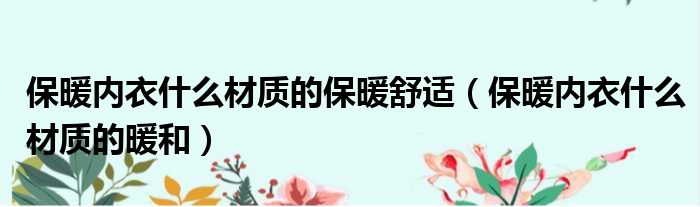 保暖内衣什么材质的保暖舒适(保暖内衣什么材质的暖和)