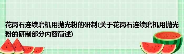 花岗石连续磨机用抛光粉的研制(关于花岗石连续磨机用抛光粉的研制部分内容简述)